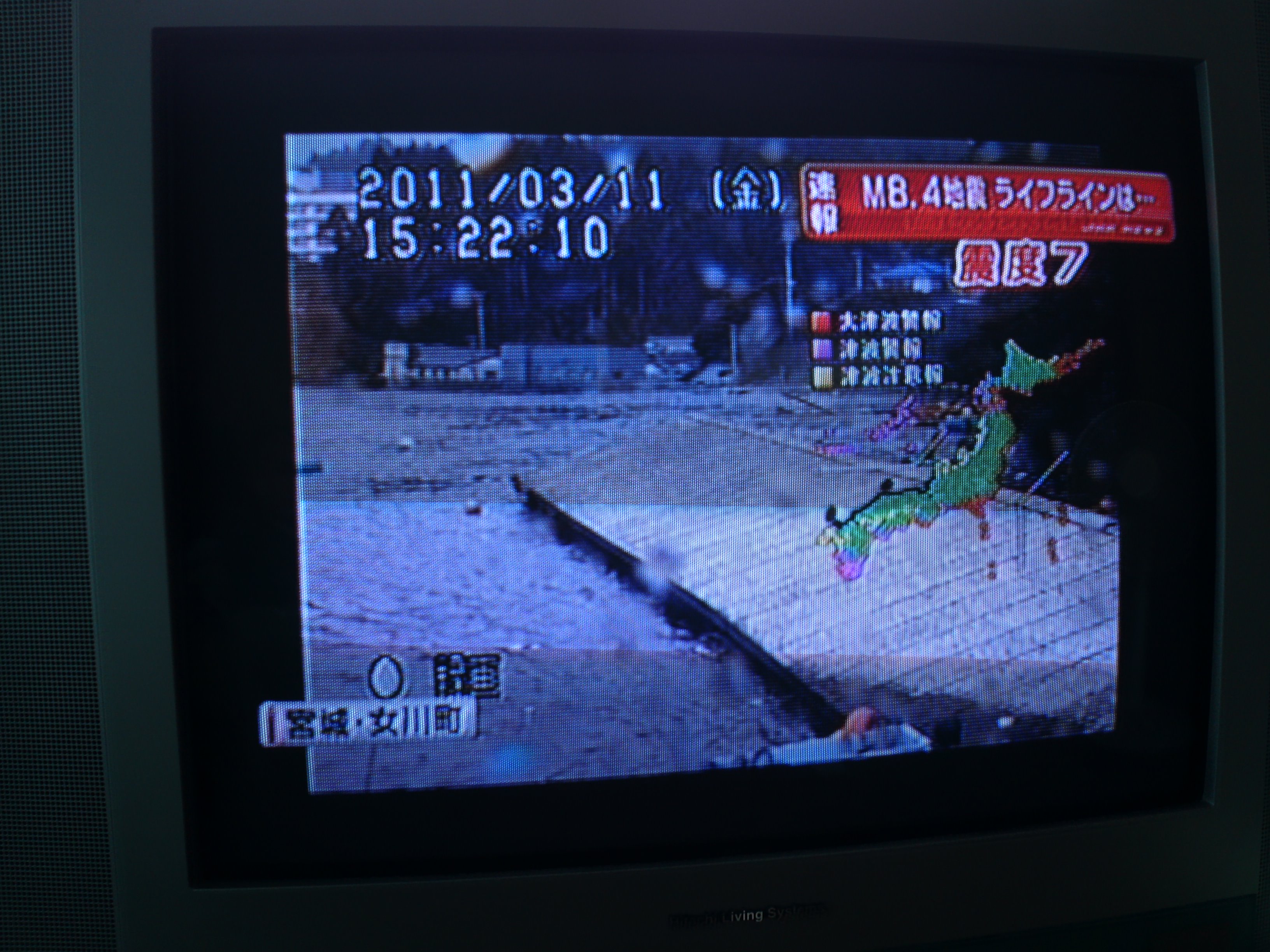 I didn’t realize an earthquake had ripped through the northeastern side of Japan until I watched ten minutes of Japanese news. I had just come out of the toilet and immediately noticed all of the education office staff clustered around the tiny television.