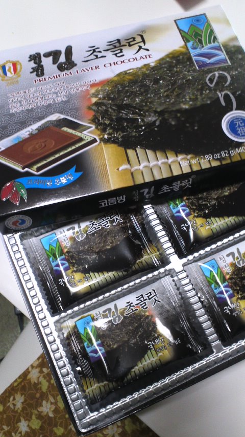 March 26, 2014 by Jd Banks WTF Chocolate My friend gave me seaweed chocolate from Korea. Let’s just say it tasted fishy… but I still liked it! Share this:TweetShare on TumblrPocket Click to share on Reddit (Opens in new window) Reddit Click to email a link to a friend (Opens in new window) Email Click to print (Opens in new window) Print Like Loading... Related