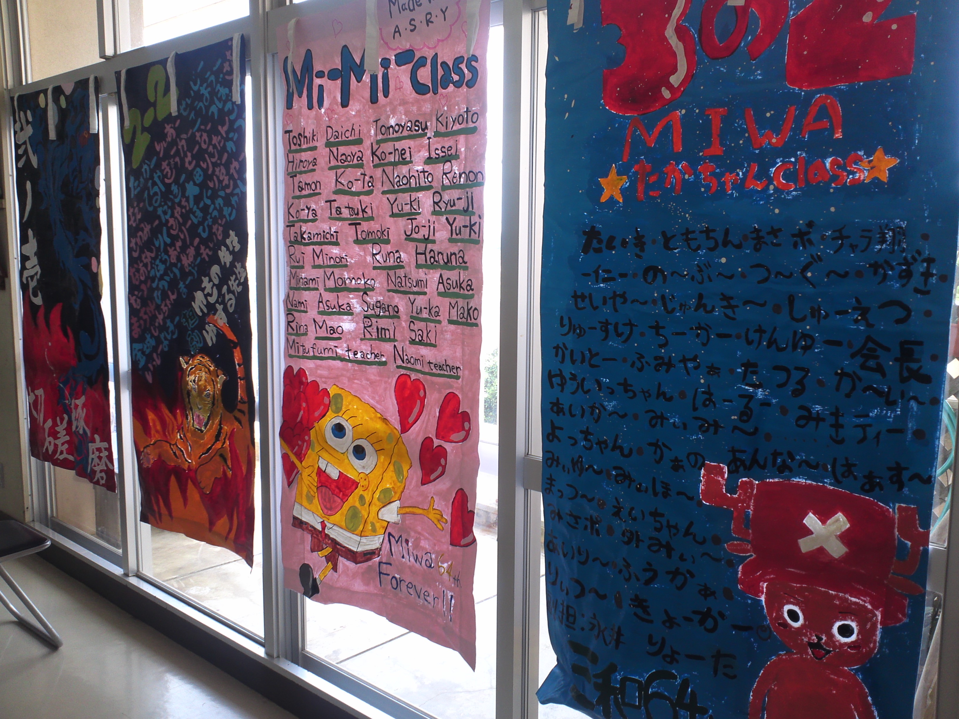 Mascots on my students' class banners (Chopper from ONE PIECE, SpongeBob, and Tigers)
